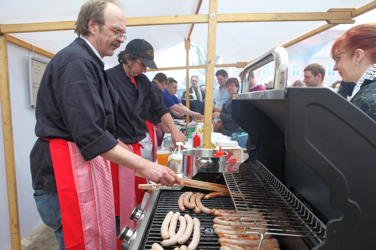 Trotz Currywurst und Döner – wer am letzten Aprilsonntag die Domäne Dahlem besuchte, konnte erleben, dass die Liebe der Berliner zur guten alten Bratwurst ungebrochen ist. Eine Tatsache, die auch die Grillverhaltensforscher bestätigen. Denn zwischen Friedrichshagen und Frohnau ist sie das Grillgut Nummer 1. Nämlich mit weitem Vorsprung vor Puten- und Nackensteak. Selbst Feinschmecker finden Gefallen an der Bratwurst, vorausgesetzt natürlich, es handelt sich bei dem Objekt der Begierde nicht um ein äußerlich wie geschmacklich uniformes, vorwiegend salziges Industrieprodukt.