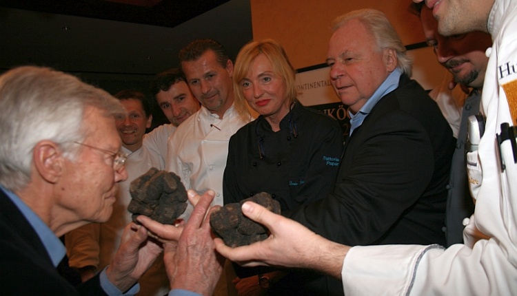 Auf der traditionellen Trüffelparty im Restaurant Hugos des Berliner InterContinental in der zweiten Januarwoche wurde aber dann doch noch alles klar gemacht. 30.000 Euro kamen dort zusammen – die Nobelherberge spendete die Hälfte des Eintrittspreises von 240 Euro pro Person, eine Tombola erbrachte den Rest. Karlheinz Böhm verlor damit die Wette, erhielt aber dafür einen 265.000-Euro-Scheck und wird nun – das war sein Einsatz – gemeinsam mit seiner Frau Almaz für Bos, Witzigmann und die beteiligten Sterneköche in München äthiopisch kochen. Mit hoher Wahrscheinlichkeit Injera, das Nationalgericht des Landes…