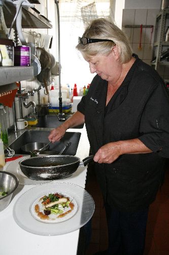 wie und womit allerorten Schäumchen geschlagen werden. Es ist nur so: Sie will das nicht, sie hat das nicht nötig, sie will keine Pirouetten auf dem Teller drehen, sie will einfach nur mit guten Sachen gut kochen. Und so ragt sie mit ihrer grundsoliden, puristisch auf Qualität bedachten Kunst erfrischend aus der Masse der Schaumschläger und Türmchenbauer heraus.