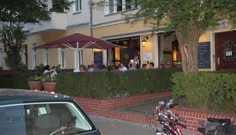 15.00 Uhr. Fritz Lloyd Blomeyer kommt, gelernter Käsemacher, seit einem Jahr Händler und Bieberbau-Lieferant. Er bringt eine Auswahl aus kleinen deutschen Käsereien: einen milden Blauschimmelkäse aus dem Allgäu; einen Schwarzbierkäse aus der Dorfkäserei Geifertshofen; Chevre noir, den Ziegenfrischkäse aus der Eifel; Via Aurelia, 18 Monate im Felsenkeller gereift… Die Mannschaft kostet, diskutiert, am Abend wird eine Käseauswahl aus deutschen Käsereien auf der Karte stehen. Inzwischen sind auch Ute Blümke und Claudia Mull eingetrudelt – gemeinsam mit Anne Garkisch sind sie für den Service zuständig. Sie machen ihre Arbeit in der anheimelnden guten Stube so unprätentiös-angenehm, dass man sich manchen arroganten Kellner-Schnösel hier als Praktikanten wünscht.