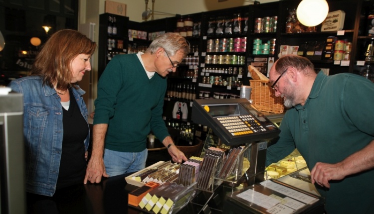 Dass die Regale ringsum mit Feinkost gefüllt sind, die in Berlin Seltenheitswert hat, gehört zum Wohlfühlflair des kleinen Ladens. Es gibt im De Maufel Butter, Essig, Gewürze, Honig, Marmelade, Nudeln, Öl, Senf, Schokolade aus der renommierten Luxemburger Konditorei Oberweis und natürlich das berühmte Quetschekraut, zu deutsch Pflaumenmarmelade.
