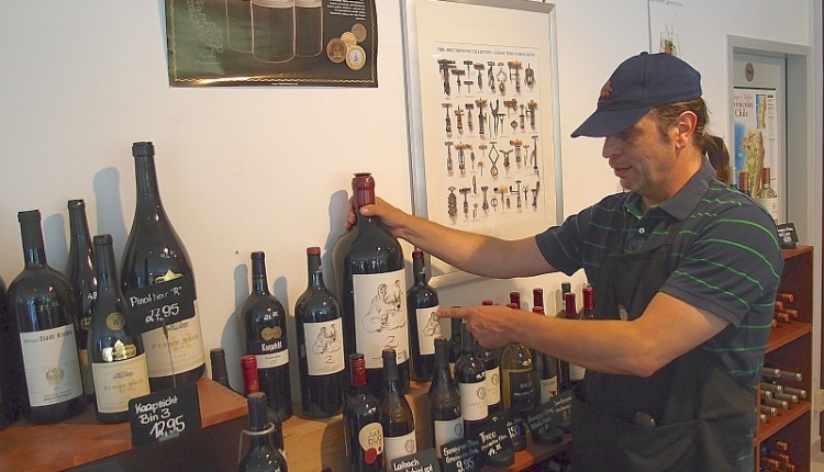 Auf 120 Quadratmeter Ladenfläche präsentiert sich die „Weinkiste“ in Weißensee mit einer stattlichen Auswahl von über 300 Flaschenweinen, mit denen Grobi auch als verantwortlicher Einkäufer Spürnase und Geschmackssicherheit beweist: deutsche Gewächse von der Ahr bis Württemberg, darunter viele von noch weniger bekannten Winzern, Weine aus Frankreich, Italien, Spanien und Österreich, Überseeisches aus Chile, Kalifornien und Australien, Winzer- und Whiskysorten, Obstbrände. „Unsere Weinkiste ist wirklich eine kleine Schatzkiste“, anerkennen inzwischen Grobis Stammkunden, die nicht nur die Auswahl, sondern „Hier nutzt uns kein Premier Grand Classé, und auch kein Grand Crú Classé“, sagt Grobi, „hier brauchst Du Weine, die gut und bezahlbar sind.“