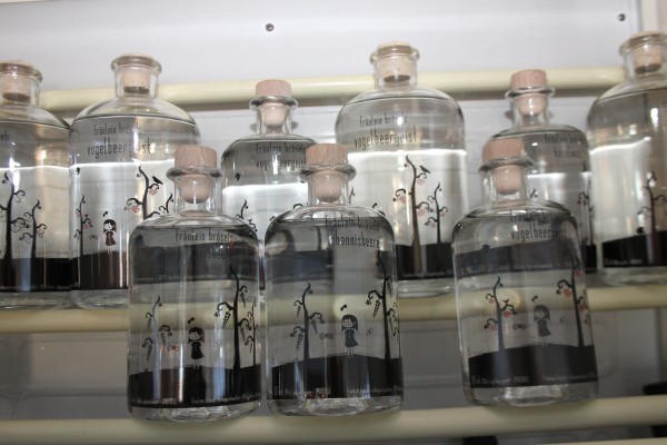 Auf die Frage nach ihren vinophilen Präferenzen antwortet sie ebenso knapp: „Österreichisch, biodynamisch, besonders.“ Natürlich wusste sie um die Schwierigkeiten des Terrains, auf das sich auch in Berlin nur wenige Frauen wagen. Alice Beckmann, Kerstin Erlenmaier, Anja Schröder. Diese Liga. Sie kämpfte sich nach oben und schaffte mit einer Schnapsidee endgültig den Durchbruch. Ende 2012 begann sie, Produkte einer kleiner Burgenland-Brennerei in Berlin anzubieten. Gatronomen wurden aufmerksam, die Medien folgten. Möglicherweise lag das auch an Stefanie Drobits extravaganten Äußerlichkeiten, wahrscheinlich an ihrer einprägsamen Marke „Fräulein Brösels Schnapserwachen“, zuallererst jedoch wohl doch an der Qualität dessen, was da in die von einem Wiener Grafiker märchenhaft designten Flaschen kommt: Vogelbeergeist zum Beispiel, besonders aromatisch, weil die Beeren unvergoren und ohne Fremdzucker mit Alkohol ausgesetzt werden. Der erst dann destilliert wird, wenn sie ihr Aroma vollständig abgegeben haben.