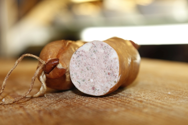 Der Ururgroßvater des heutigen Inhabers Roman Thum brachte die Rezeptur vor 135 Jahren aus Böhmen mit in die damalige k. u. k. – Hauptstadt. Seitdem produzierte der Familienbetrieb nach dem traditionellen Verfahren der Adernpökelung und ohne jegliche Zuschlagstoffe. Das Ergebnis ist eine extrem schöne Maserung, eine kernige, aber nicht wässrige Konsistenz und jene typische Aromatik, leicht vanillig mit zarten Röstnoten.