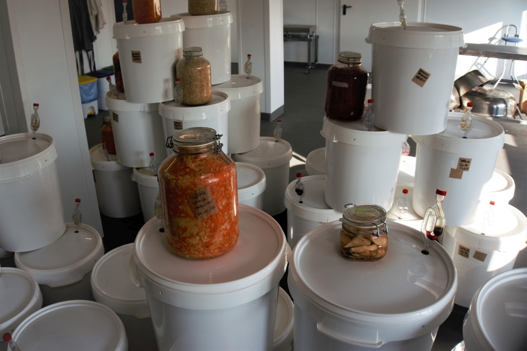 „Es handelt sich um eine 130 Quadratmeter große Halle in Containerbauweise, die von einer Firma aus Sachsen-Anhalt in nur acht Wochen errichtet wurde“, so Schnelle, „und die alle Bedingungen für die Fermentation erfüllt.“ Hier können die Milchsäurebakterien bei optimalen Temperaturen also ganze Arbeit leisten. Mit Hilfe von Salz, das die Zellwände des Gemüses lockert und ihnen Wasser und Zucker entzieht, vergären sie den Zucker. Das Gemüse wird weicher und bekommt einen feinen, mildsäuerlichen Geschmack.