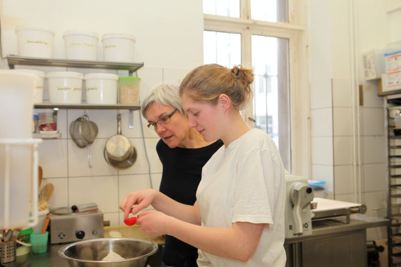 Ja, ich habe zur Zeit drei Lehrlinge, die sich übrigens alle nach ihrem Abitur ganz bewusst für meine kleine Bio-Backstube entschieden haben.
