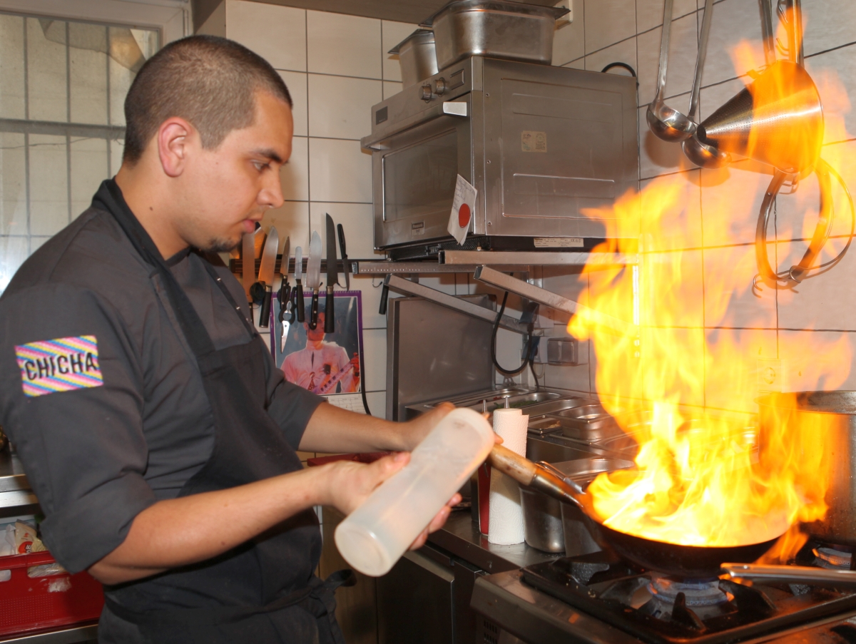 Sein Counterpart Simón Castro Mendoza, 28, wurde in Essen geboren, Vater Peruaner, Mutter Deutsche, absolvierte eine klassische Kochlehre im Sheraton Hotel seiner Heimatstadt und arbeitete als Sous Chef im Berliner Serrano. Im August 2016 startete er als Chicha-Küchenchef und erwarb sich schnell den Ruf eines Mannes, der „ehrgeizig daran feilt, die Küche seiner Heimat mit der Stilistik der modernen Gourmetküche zu verbandeln.“ Zitat Bernd Matthies, das einem Ritterschlag gleichkommt.