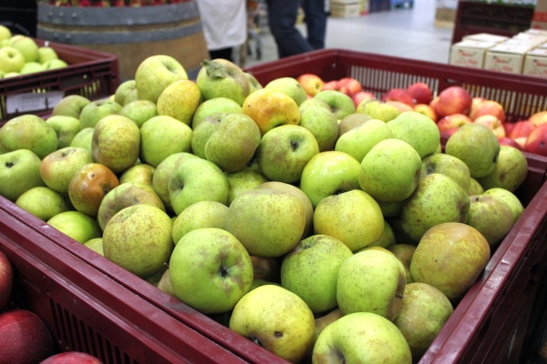 Valtellina hat mehr zu bieten als Käse und Bresaolo, denn im Tal gedeihen ebenso die Äpfel Meta di Valtellina g.g.A.. Auch hier wieder ein geschütztes Produkt, dass zwischen 200 und 900 Höhenmetern reift. Produktionsleiter Bruno, graues Haar, breites lächeln, führte uns durch die riesigen Hallen, wo die Äpfel aufbewahrt und zu Nektar, Säften und getrockneten Apfelscheiben weiterverarbeitet werden. Das Unternehmen besteht seit 20 Jahren und ist, genau wie die Käsehersteller, Teil eines produktschützenden Konsortiums. Die Hoffnung auf ein anstehendes Apfel-Tasting war genau nach meinem Geschmack. Die belächelnden Blicke meiner Kolleginnen auf mir spürend, ließ ich es mir nicht nehmen in einen saftigen roten Apfel zu beißen.
