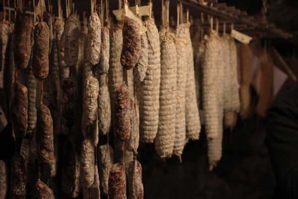 Nur fast ansteckend, denn der nächste Stopp, ein Bresaolo-Hersteller, führte mich an meine Grenzen. Bresaolo wird aus der Keule des Rindes hergestellt und ist ein Produkt mit geschützer geografischer Angabe (g.g.A.), also ein Produkt dessen Qualität und Ansehen eng mit einer Region verbunden ist. Die europäische Union fördert Produkte mit g.g.A. sowie g.U. (geschützte Ursprungsbezeichnung) Kennzeichnungen und erhält somit Erzeugnisse, die in Europa hergestellt und deren Ressourcen aus europäischen Regionen kommen. Wir besuchten den Hersteller Del Zoppo und seine Produktionsstätte mit riesigen Kühlhäusern, voll gepackt mit unterschiedlich ausgereiften Rinderkeulen.