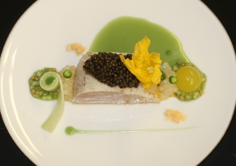 Liebisch („bitte vergessen Sie in Ihrem Bericht mein Team nicht“), also Liebisch und sein Team, sind dabei fast schon revolutionär puristisch. Jeder Gang konzentriert sich auf drei Komponenten, wobei die natürlich nicht pur auf den Teller kommen, sondern in verschiedenen Konsistenzen und Texturen. Der Einfallsreichtum dabei ist verblüffend, beispielsweise, wenn eine in ihrer Schale dampfpochierte Gillardeau-Auster auf einen Ingwer-Soja-Fond, Ingwerjulienne, Ingwerkaviar, Sojasprossen, Sojabohnen und eine Tofu-Soja-Crème trifft. Das ist sowohl geschmacklich als auch optisch eine Offenbarung.
