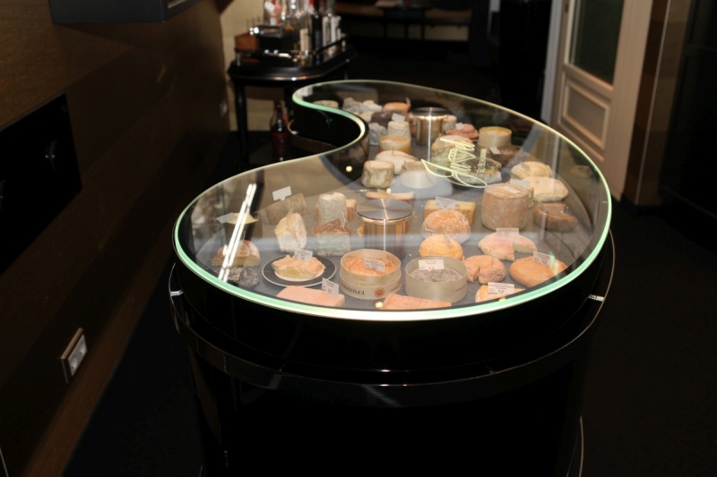 Übrigens: Es soll Juwel-Gäste geben, die ihr Menü nur deshalb mit einem Käsegang beschließen, um den Einsatz des Käsewagens zu erleben. Selbst die Tester des Gault&Millau – und das will schon was heißen – waren derart von Form, Farbe und Funktion des Gefährts beeindruckt, dass sie ihm einen ganzen Abschnitt widmeten. Das Meisterwerk handwerklicher Kunstfertigkeit glänzt lackschwarz, besitzt eine eigene Klimaanlage und Beleuchtung, es gibt unendlichen Stauraum, und die Glasabdeckung kann mechanisch nach oben gefahren werden. Der Preis des Unikats dürfte den eines Kleinwagens erreichen – ob ein Führerschein für die Bedingung nötig ist, konnten wir nicht in Erfahrung bringen. Für die Bestückung ist Maître Affineur Volker Waltmann aus Erlangen zuständig, dessen Reifekeller übrigens ähnlich einzigartig wie der Kirschauer Käsewagen ist.