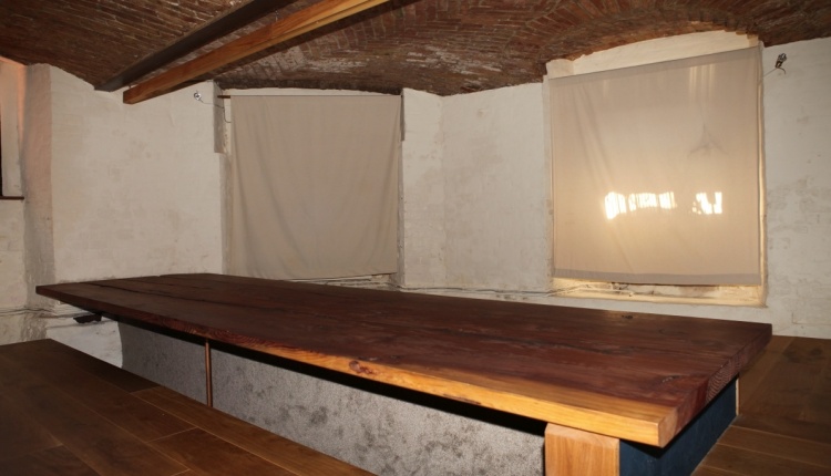 Übrigens, das sein „Service auf Augenhöhe“ fast ausschließlich auf Knien stattfindet, liegt daran, dass die riesige Redwood-Tafel in den Boden eingelassen ist, die Gäste also auf Fußbodenhöhe sitzen.