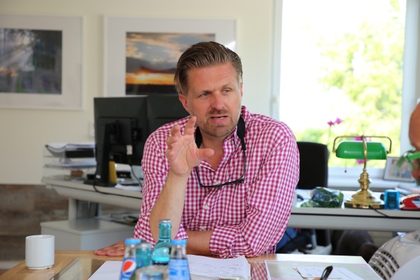Malte Voigts, ein sympathischer Zwei-Meter Mann, ist der Chef auf dem Hof. Personalbürokratisch korrekt heißt sein Job Geschäftsführer der Spargelhof Kremmen GmbH & Co. KG. Voigts, Jahrgang 1977, stammt aus einer niedersächsischen Bauernfamilie, die seit Generationen in Holthusen in der Lüneburger Heide ansässig ist. Er studierte Agrarökonomie in Göttingen und kam 2007 als Produktionsleiter Ackerbau nach Kremmen. Seit 2010 führt der 41-Jährige die Geschäfte des Spargelhofes nordwestlich von Berlin und spricht mit uns über ’seine‘ Heidelbeeren.