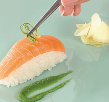 Der Probierlöffel mit integrierter Pinzette ist solch ein Werkzeug. So können Gerichte abgeschmeckt und im nächsten Augenblick garniert werden. Mit 17 cm Länge ist er kompakt genug, um in der Ärmeltasche einer jeden Kochjacke Platz zu finden. Das Profiwerkzeug ist aus rostfreiem Edelstahl und spülmaschinenfest.