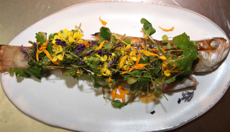 Dennoch gehört seine Küche wohl eher in die Kategorie wahrer Genuss. Was kommt da also? Ein ungemein frischer, anregender Gang aus marinierten grünen Paprikaschoten, Petersilienpesto und Schafsjoghurt; ein sagenhaft gutes Wildschweintatar, das von gelbem Senf und fermentierten Tomaten aromatisch assistiert wird; ein Rottstocker Bachsaibling, der nach einem Salzlakebad und ein paar Minuten auf dem Hibachi Grill lediglich mit Wildkräutern aus der Schorfheide serviert wird.