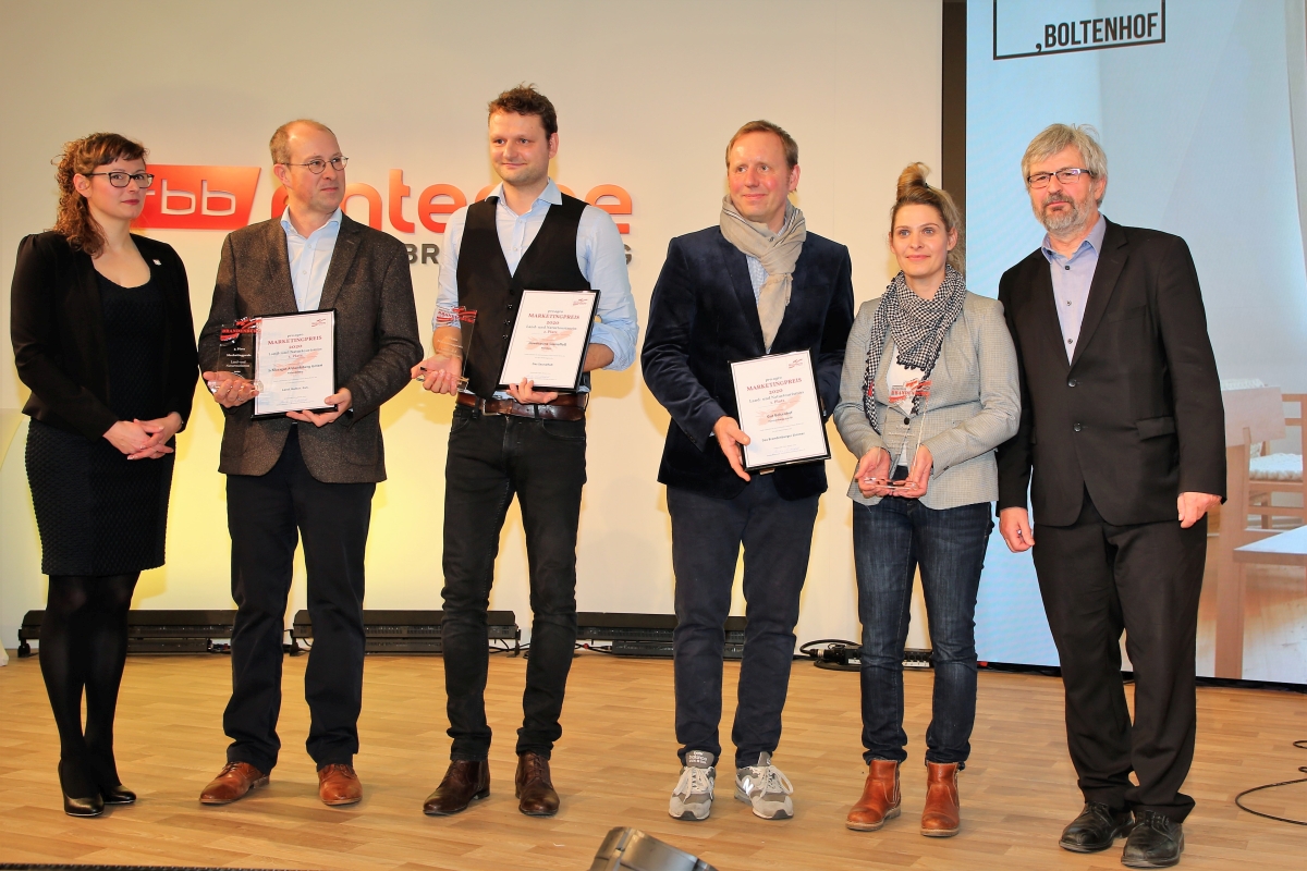 Die Preisträger in der Kategorie Ernährungswirtschaft sind Glina Whisky Destillerie (1. Platz), Bäckerei Exner (2. Platz) und Bobalis Agrargesellschaft mbH (3. Platz). Die Preisträger in der Kategorie Direktvermarktung sind Brandenburger Kochfamilie (1. Platz), Meat Bringer GmbH (2. Platz) und ICU Investor Center Uckermark GmbH (3. Platz). Die Preisträger in der Kategorie Land- und Naturtourismus sind Gut Boltenhof (1. Platz), Havelsauna Saunafloß (2. Platz) und Schlossgut Altlandsberg GmbH (3. Platz) – eine ausführliche Beschreibung der Gewinner finden Sie im Anhang. Der EDEKA-Regionalpreis ging an das Unternehmen Evelina Deutschland GmbH. Überreicht wurde der Preis von EDEKA Geschäftsführer Hans-Ulrich Schlender. Alle Preisträger freuten sich neben einer Urkunde und einer Stele mit Platzierung über ein Marketingpaket. Mit der Broschüre Neues aus Brandenburg. Ein Land voller Ideen werden die Produkte, Produktideen und Vermarktungskonzepte aller 50 Wettbewerbsteilnehmer des pro agro-Marketingpreises 2020 dargestellt. Die gedruckten Exemplare dieser kurzweiligen Entdeckungsreise durch das innovative Brandenburg werden auch im Jahresverlauf durch pro agro angeboten, um noch umfangreicher über die Vielfalt aller eingereichten innovativen Beiträge zum pro agro-Marketingpreis 2020 informieren zu können.