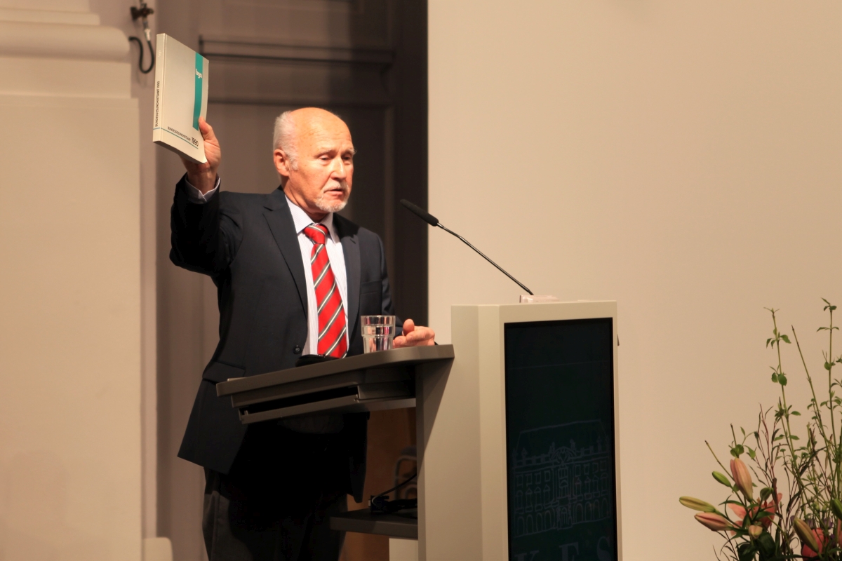 Letzter Redner des Symposiums war dann ein Mann, der nicht auf der Laudatorenliste stand, aber viel zu sagen hatte und dessen Geschichte aus der Wendezeit mehr über den Menschen Dieter Großklaus erzählt als es manches blumige Lob vermag.