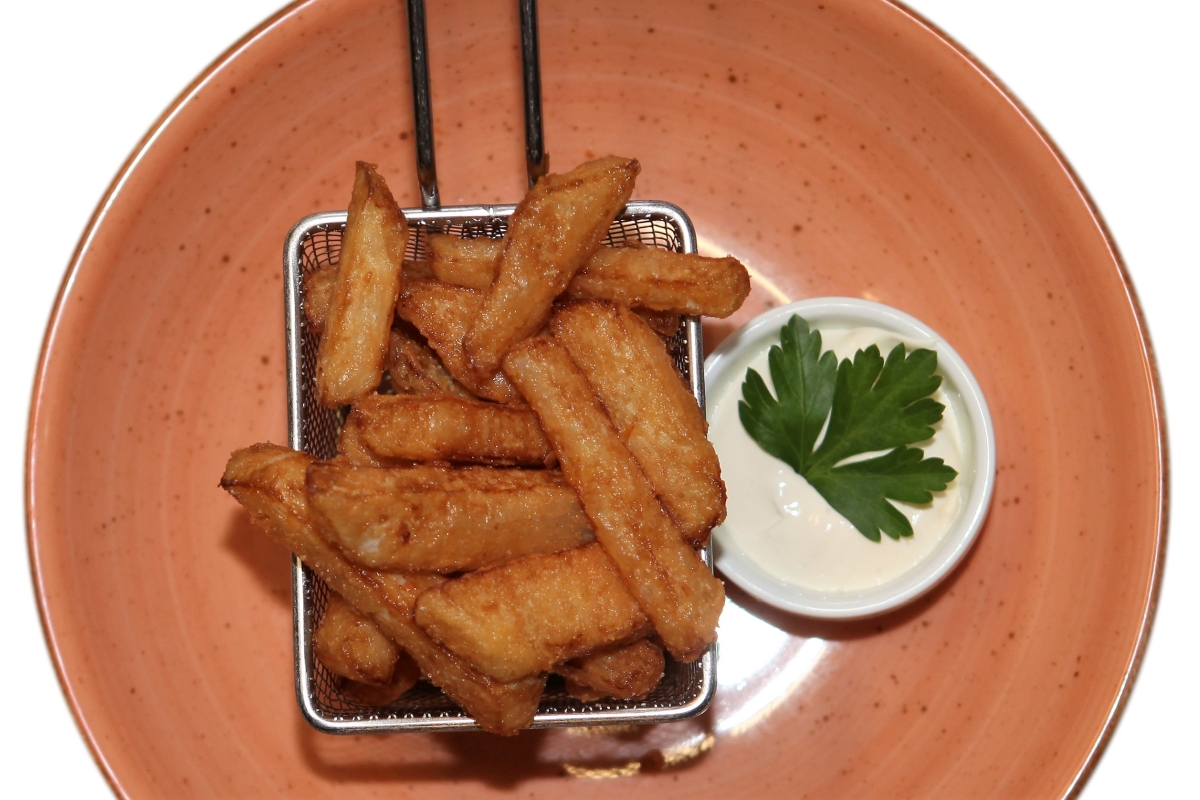 Paradebeispiel sind seine in Rapsöl frittierten Kohlrabispalten, die die meisten Pommes frites locker in den Schatten stellen. Um sie allerdings so hinzukriegen, dass Gäste dieses Urteil fällen können, bedurfte es schon einer längeren Testphase. „Man muss Kohlrabi vor dem Frittieren zuerst blanchieren und mit Kichererbsenmehl bestreuen“, so der Lowkal-Küchenchef, „dann gelingen die Kohlrabi-Pommes bestens.“