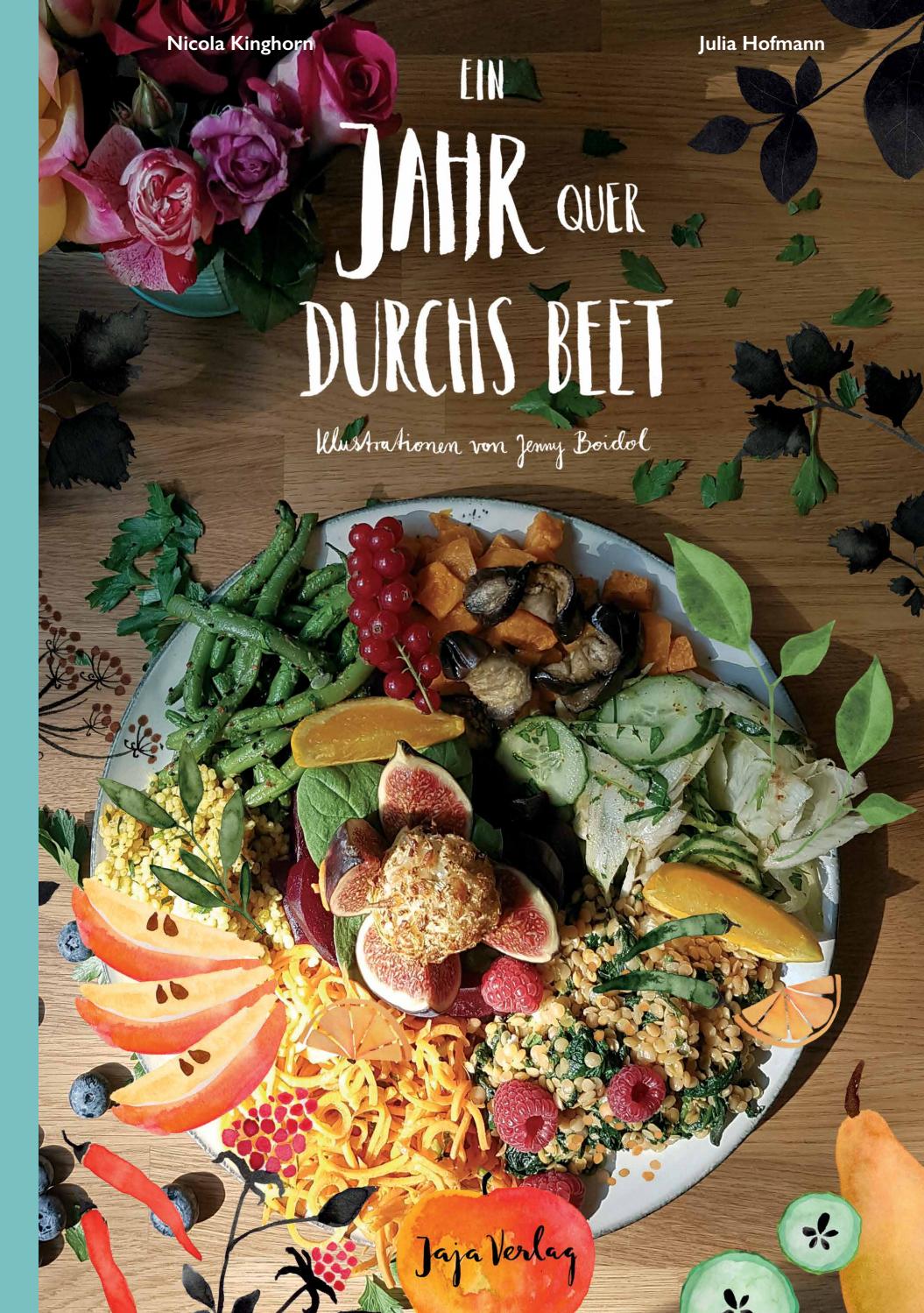 „Ein Jahr quer durchs Beet“ ist Jenny Boidols Kochbuch-Erstling. Die Rezepte des 192-Seiten-Bandes stammen von Nicola „Nicky“ Kinghorn und Julia Hofmann. Die beiden jungen Frauen betrieben im Frankfurter Westend bis 2017 gemeinsam Matilda‘s Kitchen. Dann wurde Nicola Kinghorn Mutter, stieg aus und Julia Hofmann führt seitdem den angesagten kulinarischen Ort allein. Den dringenden Wunsch nach einem eigenen Kochbuch hatten die beiden koch- und backverliebten Seiteneinsteigerinnen ins gastronomische Geschäft bereits im Sommer 2015. Sie schrieben ihre Rezepte auf und fanden mit Gerhard Weber einen Fotografen, der ihre Gerichte so ins Bild setzte, dass sie Appetit machen. Außerdem steuerte Weber ein paar intensive Impressionen aus Matilda’s Kitchen bei.