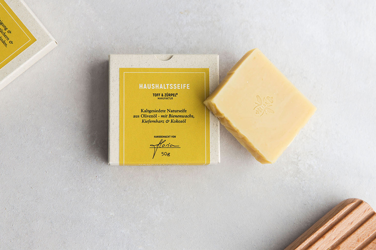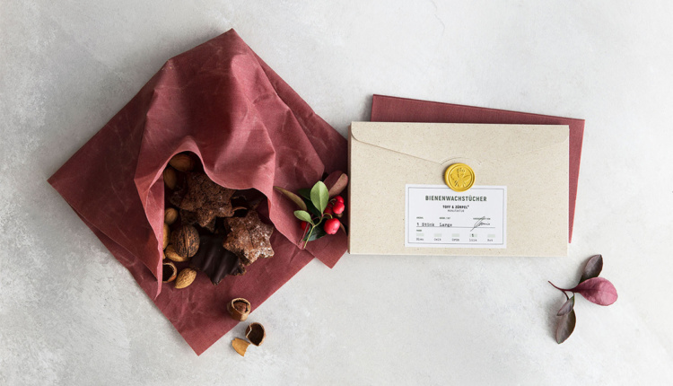 Ungefähr ein bis zwei Jahre sind die Tücher verwendbar. Das allerdings setzt die richtige Pflege voraus und für die hält TOFF & ZÜRPEL aus Dresden das passende Mittel bereit. Von dem Unternehmen, das selbst auch Bienenwachstücher samt hübschem Geschenkumschlag herstellt, stammt eine natürliche Haushaltsseife zur Beseitigung von gröberen Verschmutzungen. Das Tuch wird mit der Seife aus Oliven- und Kokosöl sowie Kiefernharz und Bienenwachs leicht eingerieben, mit einem feuchten Lappen abgewischt und mit kaltem Wasser abgespült. Mit einer Überfettung von 10%, heißt es bei TOFF & ZÜRPEL, sei die Seife besonders hautschonend.