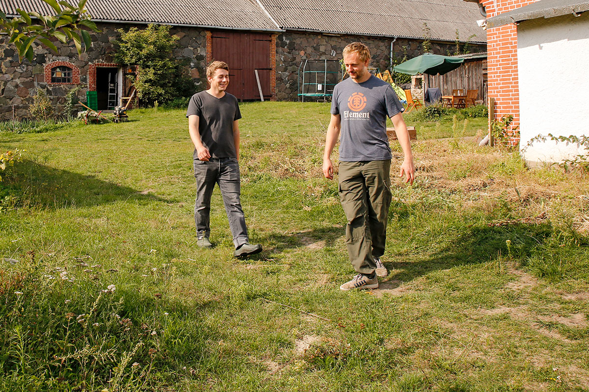 Was das Besondere an ihren Pilzen sei, wollten wir wissen. Es folgte eine Einladung nach Petznick, einem 118-Einwohner-Dörfchen vor den Toren Templins am Rande des Biosphärenreservats Schorfheide-Chorin. Andreas Kirbach und Manuel Gross empfangen uns auf dessen Grundstück, das auch ihre Edelpilzfarm beherbergt. Im August 2019 gegründet, ist die Anlage noch ein „Farmchen”, aber sie soll wachsen – trotz Corona. Kirbach, 43, stammt aus Görlitz, studierte an der Freien Universität Biologie und promovierte mit dem Thema „Navigation und Kommunikation von Honigbienen” zum Dr. rer. nat. Der 37-jährige Gross ist in Parchim gebürtig, der Ausbildung zum Mechatroniker folgte eine über zehnjährige Tätigkeit in der Medizintechnik.