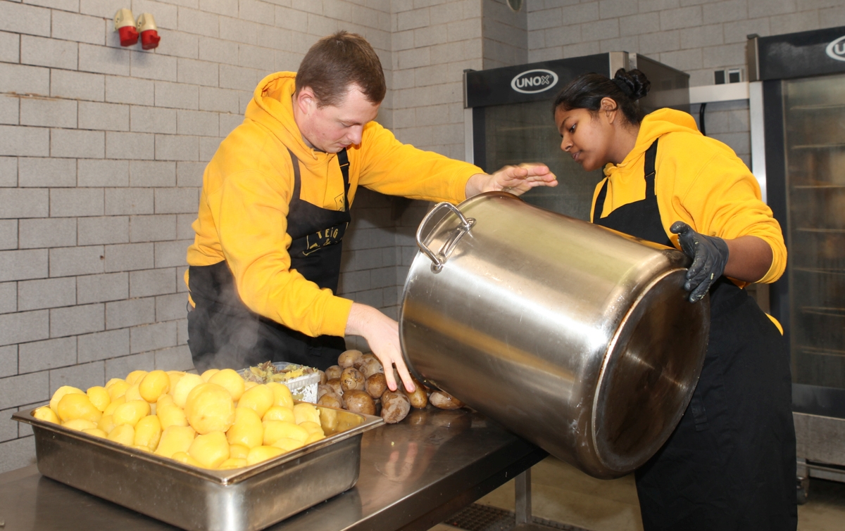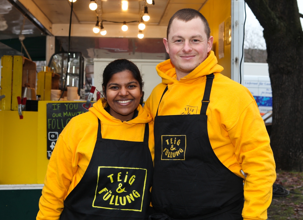 Donnerstags, freitags und samtags ist Markttag für Bruno Ebermann und Anusha Sundaresan. Und mittwochs Produktionstag. Was müssen Sie denn produzieren, wenn die Maultaschen aus dem Ländle geliefert werden? „Kartoffelsalat und Brühe.“ Ach so. Bruno Ebermann hat das Abfällige in unserer Bemerkung natürlich gehört und lädt uns ein, dabeizusein.