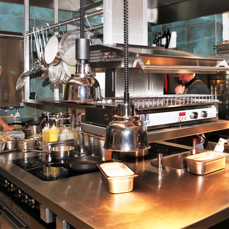 Sobald Sie wissen, welche Art von Licht Ihr Raum benötigt, müssen Sie die verschiedenen Bereiche planen. Der erste Schritt ist die Umgebungsbeleuchtung – die Gesamtbeleuchtungsstärke (die natürliches Licht sein kann, wenn es in Ihrem Raum funktioniert). Als Nächstes kommt die Arbeitsbeleuchtung, die in Bereichen platziert wird, in denen unbedingt gearbeitet werden muss, z. B. um Kunden beim Lesen der Speisekarte zu unterstützen, oder an der Kasse, um den Mitarbeitern bei der Zahlung zu helfen. Planen Sie schließlich Ihre Akzentbeleuchtung, um den Raum zu personalisieren. Das können Spotlights sein, um auf ein Merkmal aufmerksam zu machen, oder einfach nur ein markantes Design im Front-of-House-Bereich.