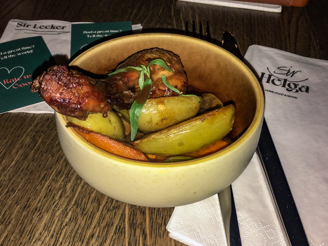 Die Zutaten und Kräuter sind frisch und verleiten zu Schnappschüssen, bevor man das Werk mit der Gabel zerstören will. In einer ruhigen Minute verriet uns der Chefkoch, dass das Sir Helga ausschließlich Zutaten aus der Region verwendet. Das Fleisch wird für jedes Gericht selbst gewolft, und sogar das Brot stammt aus einer Bio Bäckerei in der Nähe.