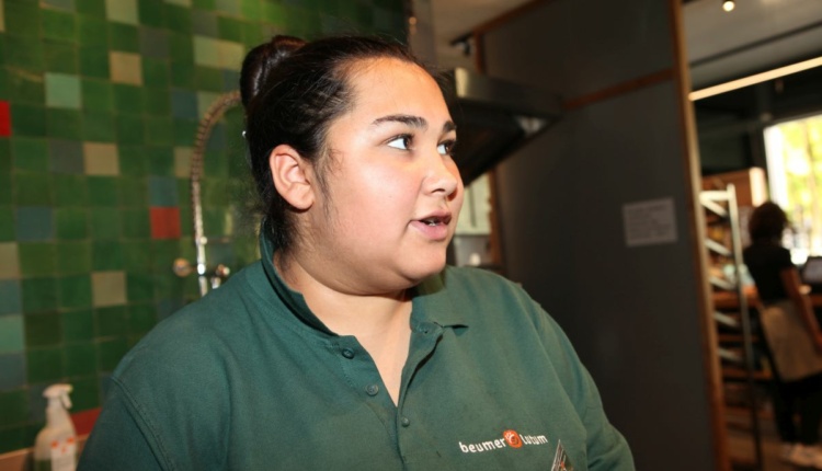 Die 2019 eröffnete Filiale im Kreuzberger Metropolenhaus gegenüber dem Jüdischen Museum ist die jüngste der fünf Verkaufsstellen des Berliner Bio-Bäckers Beumer&Lutum und seit nunmehr fast vier Monaten der Arbeitsplatz von Stefania Kercso. „Die erste Woche war echt stressig“, erinnert sich die 16-Jährige, „vor allem das frühe Aufstehen spätestens um 5.00 Uhr ist mir schwer gefallen.“