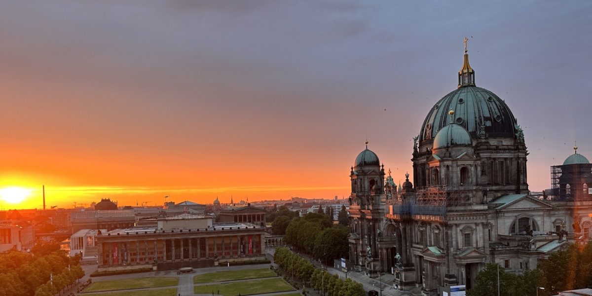 Nach dem berauschenden Kunstgenuss empfehlen wir einen Absacker in einer der verschiedenen Lokalitäten im Stadtschloss Berlin. Von der Dachterrasse gibt es den Sonnenuntergang gratis dazu.