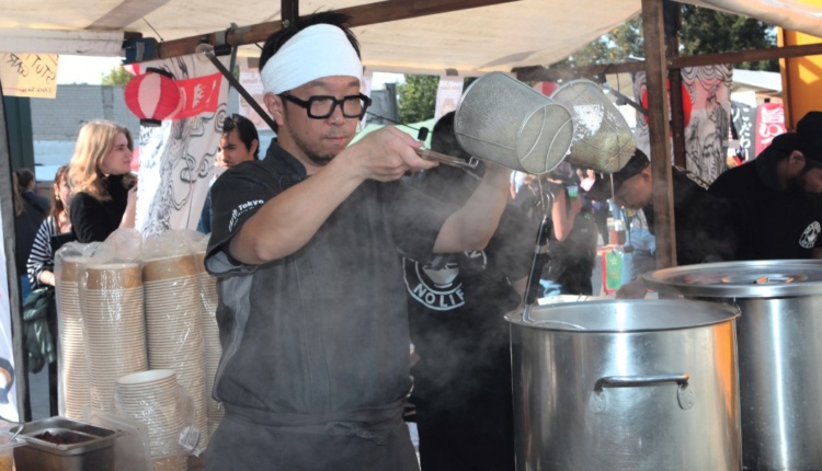 So sahen das auch die Küchenteams der Ramen-Restaurants, die ihre suppigen Kreationen auf dem Festivalgelände präsentierten – etwa das LIFE vom Maybachufer in Kreuzberg, das Daruma Ramen, das im neuen Manifesto Market am Potsdamer Platz zu Hause ist, das Stuttgarter EArth Tokyo oder das Cocolo Ramen, das im vorigen Jahr vom Paul-Lincke-Ufer in den Graefekiez umgezogen ist. „Kochen, servieren und immer wieder Erklärungen abgeben, das war schon eine Herausforderung“, so dessen Restaurantleiterin Haruka Kobayashi. „Dennoch, es hat riesig Spaß gemacht.“
