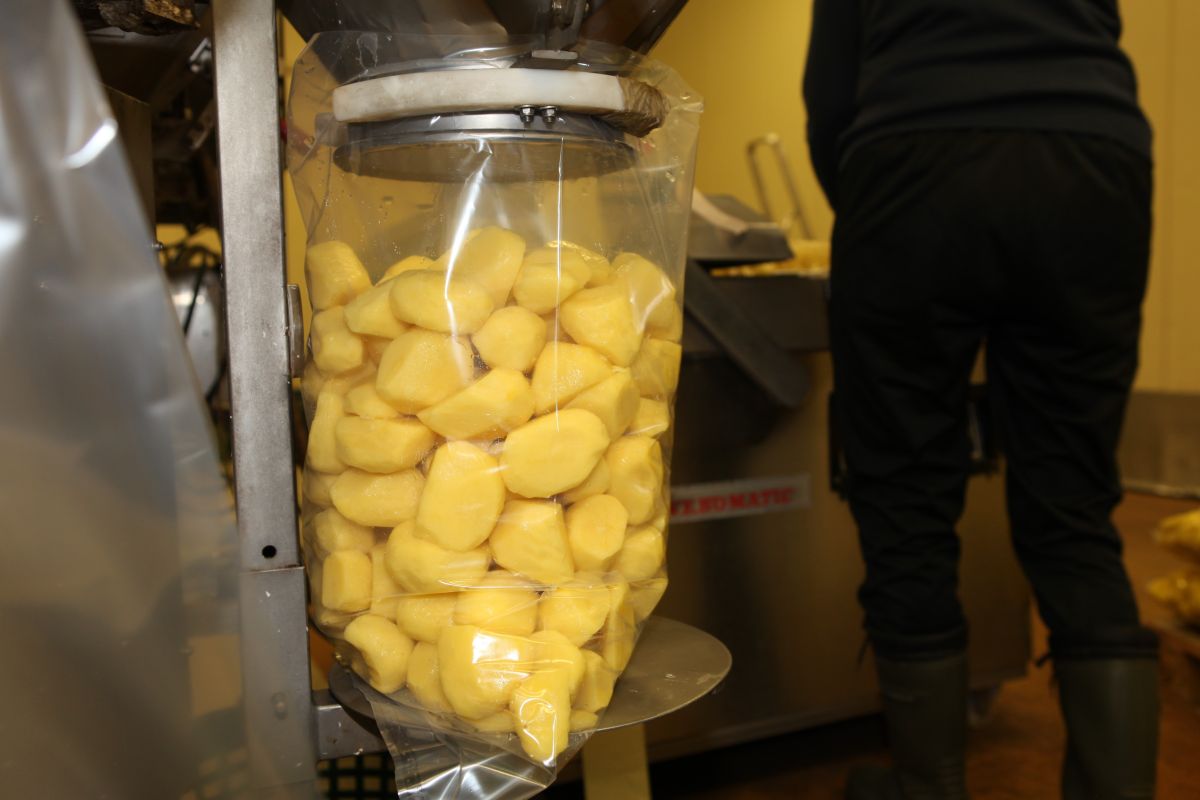 Wir fahren mit dem Vorstandsvorsitzenden der Neuzeller Agrargenossenschaft zu einer großen Halle auf dem Lindenpark-Gelände. Darin: eines der größten Investments des Unternehmens – die Kartoffelschäl- und Verpackungsanlage.