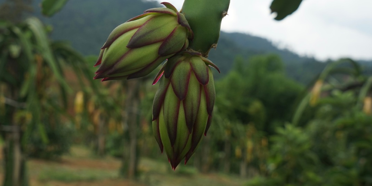 Aus den Blüten entstehen nach einiger Zeit zehn bis zwölf Zentimeter große, ovale Früchte mit einer spektakulären Optik, deretwegen Pitahayas häufig auch als Drachenfrüchte bezeichnet werden.