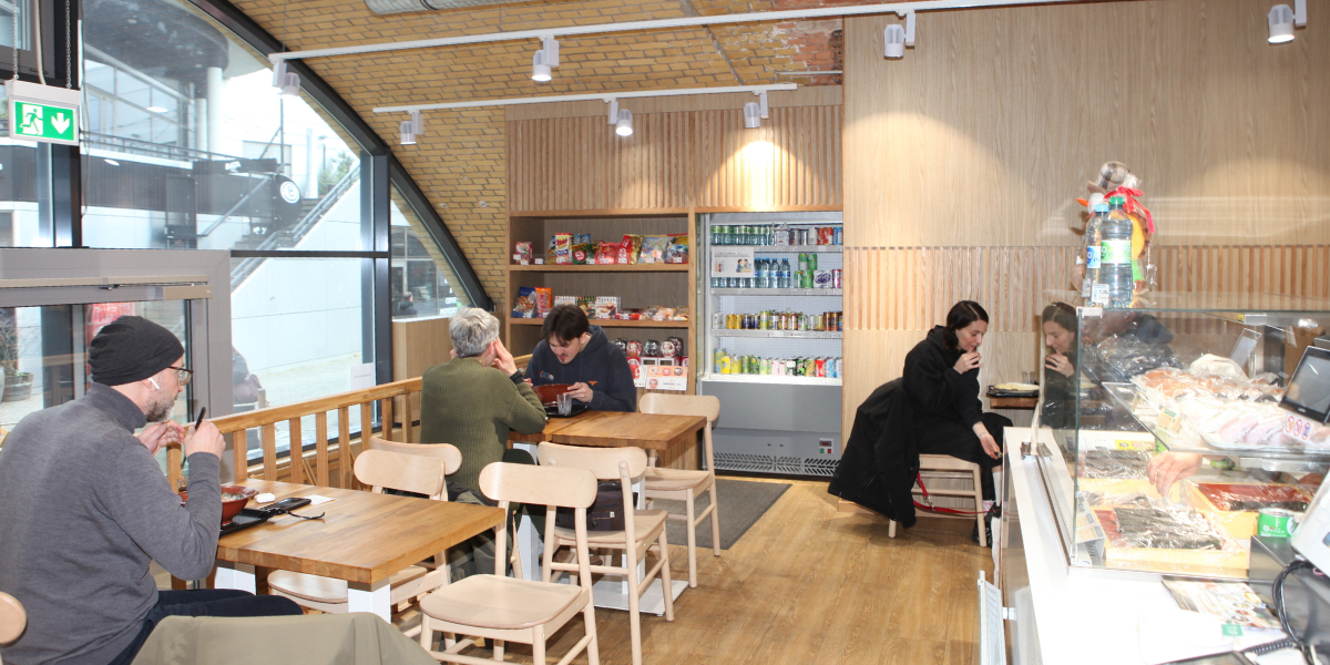 Shop Manager Daichi Ichinohe empfängt uns und steht in seinem winzigen Office für Fragen zur Verfügung. 25 Mitarbeiter, erfahren wir, sind in seinem Supermarkt und dem Bistro nebenan tätig, rund 4.000 Produkte stehen in den Regalen, zumeist Lebensmittel und Getränke, aber auch eine kleine Auswahl an Küchenwerkzeugen und Keramik, dreimal in der Woche kommt Nachschub – via Düsseldorf direkt aus Japan. Und – was uns einigermaßen erstaunt – es kommen mehr deutsche als japanische Kunden. „Das Verhältnis ist etwa 80 zu 20“, sagt Ichinohe, „lediglich am Wochenende sind die Japaner in der Überzahl.“