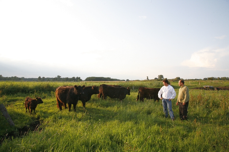 Heute stehen 30 Tiere auf 25 Hektar Weideland im Uecker-Randow-Kreis. „Landmeer – Sandmeer – nichts mehr“, so wurde die Gegend zwischen Pasewalk und polnischer Grenze früher beschrieben, sagt Kaulich. Wenn mit dieser DDR-Definition die Einsamkeit Vorpommerns gemeint war, hat sich bis heute nicht viel geändert. Die Urlaubsregion am Stettiner Haff ist gut 30, Stettin 25 Kilometer entfernt. „Ein idealer Platz für die Rinderzucht“, so Frank Lemke, der im benachbarten Rothenklempenow zu Hause ist. Er kümmert sich als Meister der Tierproduktion, eine Berufsbezeichnung noch aus DDR-Zeiten, um Weide, Wasser und die Gesundheit der Tiere.