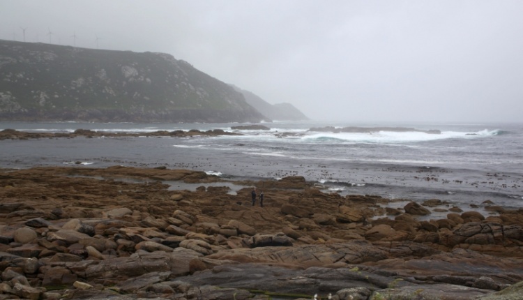 Die Scheibenwischer geben ihr Bestes. Links und rechts der Autobahn grünes, hügeliges Land – Wälder, Wiesen, Weiden. Dazwischen immer wieder riesige Eukalyptushaine. General Franco hatte sie in den 1950er Jahren zur Holzgewinnung anpflanzen lassen. „Eine ökologische Katastrophe“, sagt Rosa. Die Monokulturen entziehen dem Boden extrem viel Wasser, so dass andere Bäume nicht mehr genügend Nährstoffe erhalten, der traditionelle Mischwald Galiciens verdrängt wird. Nach gut einer Stunde Fahrt erreichen wir die Costa del muerte im Nordwesten Galiciens. Steile Klippen, rauhe Granitfelsen von bizarrer Schönheit. Hunderte Schiffe zerschellten hier bei Sturm. Die Seefahrer prägten auch den Namen – Costa del muerte, die Todesküste.