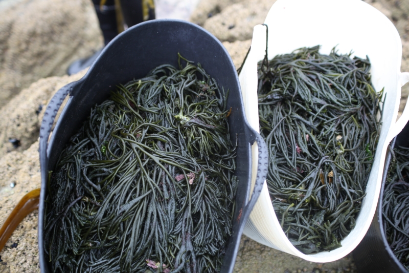 Es herrscht Ebbe, das heißt, der Meeresspiegel ist um vier Meter gesunken. Wenn den Atlantik keine Stürme peitschen, können Antonio und seine Mit-Taucher Javi und Julian Algen ernten. „Coger“, sagen sie, „pflücken“. Die Wassertemperatur beträgt gerade mal 12 Grad, der Boden ist steinig, und um die Pflanzen dem Meer zu entreißen, bedarf es viel Kraft. Kein Job für Weicheier. 40 bis 80 Kilogramm bringen Antonio und seine Männer an Land, 20 verschiedene Sorten.
