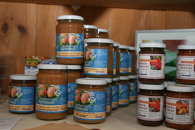Bruderhofer verarbeitet, von wenigen Ausnahmen wie Feigen abgesehen, ausschließlich Obst, Gemüse und Kräuter aus dieser Region und hat derzeit rund 50 verschiedene Feinkostprodukte im Programm: Pikante Dips, feine Dressings, kräftige Pasten, die, wie er sagt, „in der Nische für Aufmerksamkeit sorgen“. Das gilt vor allem für sein sortenreines Apfelmus, beispielsweise vom Gravensteiner Apfel, einer alten Sorte, die auf den vielen Streuobstwiesen der Gegend noch relativ häufig ist. Oder für seine Bodensee-Genießer-Dips, die er in den Geschmacksrichtungen pikant-kräftig, fruchtig-würzig und würzig-frisch natürlich ohne jegliche Geschmacksverstärker und andere Zusatzstoffe produziert. Bruderhofer hat inzwischen auch etliche Kunden außerhalb der Bodensee-Region, die meisten jedoch kommen von hier. Den Grund dafür kann sich Markus Bruderhofer nur so erklären: „Vielleicht ist es das besondere Verhältnis zu Natur und Nachhaltigkeit sowie zu anständigen, ehrlichen Lebensmitteln mit Charakter, das die Menschen hier haben.“