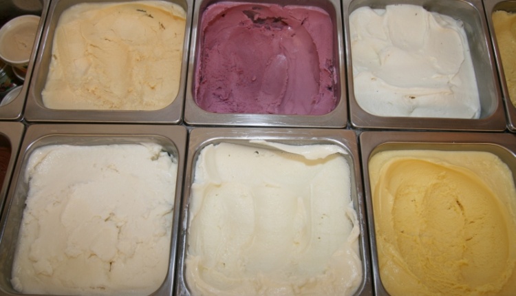 Besonders empfiehlt er die drei typischen „Especialidades de latinoamerica“: Lucuma, das nussig und nach Honig schmeckt – Algarrobina aus dem Sirup der Johannisbrotbaumschote mit karamellähnlichem Geschmack – Chicha Morada, das er aus blauem peruanischem Mais herstellt und nach Heidelbeere schmeckt. Hinzu kommen etliche eigene Kompositionen, etwa Erdbeereis mit Rocota, einer Chilisorte aus Südamerika, Ananaseis mit Minze, Ingwereis mit Granatapfelsirup oder Herba Luisa, ein Eis aus Zitronengras.