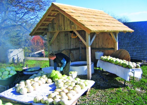 Etwa vier Tonnen Kohl passen in eine Grube, zwei davon haben Waltraud und Walter Froihofer angelegt. Nach der Kohlernte im Oktober werden sie gefüllt und abgedeckt, fünf bis sechs Monate später sind die Köpfe genussreif und werden ab Hof verkauft: geschnitten in Gläsern oder ganz und vakuumiert. „Früher bei meinem Großvater“, so der Bio-Bauer, „waren sie im Winter die einzige Vitaminquelle.“