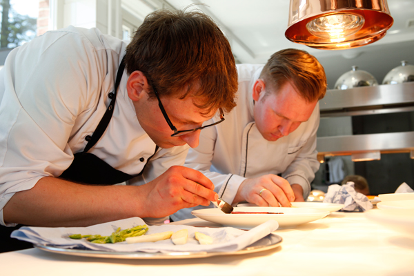 Lediglich am Herd steht Urchs nicht mehr selbst, da schaut er nur noch gelegentlich vorbei. Mehr ist auch nicht nötig, denn hier agieren junge Leute, die ihr Handwerk bestens verstehen. Küchenchef Björn Swanson, Berliner, kam aus dem Dresdner Bean & Beluga, weiß also, wie man mit Gemüse, Früchten und Kräutern umgeht. Sous Chef Sebastian Görmar, ebenfalls in der Hauptstadt geboren, war zuletzt bei Tim Raue tätig und Chefpatissier Denis Kedziora bei Paco Pérez. Ihre Küche ist dementsprechend, also nahezu kompromisslos in der jüngeren kulinarischen Zeitgeschichte angesiedelt, und das ist ebenso kompromisslos positiv gemeint. Es gibt zwei Menüs – Avantgarde und Classic – fernab eines traditionellen Hochküchenstils mit seinen Saucenreduktionen am Rand der Klebrigkeit, sondern mit vielen frischen Lichtblicken. Lediglich Vegetarier müssen sich auf das Improvisationsvermögen der Küche verlassen. Summa summarum: Ein Restaurant im Grünen, das einen Besuch mehr als lohnt.