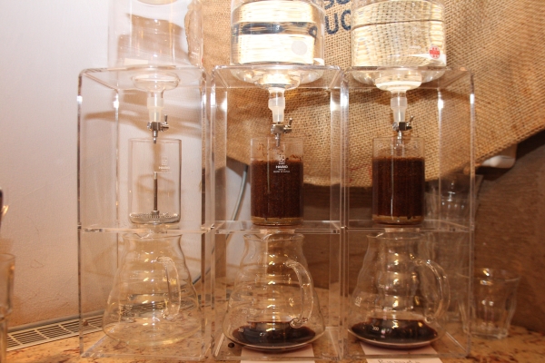 Brühen hat etwas mit höheren Temperaturen zu tun, dachten Sie sicher bis jetzt auch. Brühwarm und so. In der Kaffeewelt allerdings gelten offenbar andere Regeln. „Kalt aufgebrühter Kaffee“, schreiben die Experten, „ist die derzeit trendigste Zubereitungsart.“ Cold Drip heißt das Verfahren, kalter Tropfen. Manche sagen auch Kaltextraktion, wahrscheinlich, weil es wissenschaftlicher klingt. Die Herstellung ist identisch. Das Kaffeemehl wird über mehrere Stunden mit kaltem Wasser durchfeuchtet und anschließend über einen Filter langsam abgegossen. In einer Kanne sammelt sich – Tropfen für Tropfen – feines Kaffeekonzentrat, der Cold-Drip-Coffee. Man kann ihn pur trinken, mit heißem Wasser verlängern oder damit einen Eiskaffee aufpeppen. Natürlich gibt es den koffeinen Trendsetter auch im Duoble Eye. Wir haben probiert und befanden: sehr weich, wenig Säure, nicht schlecht.