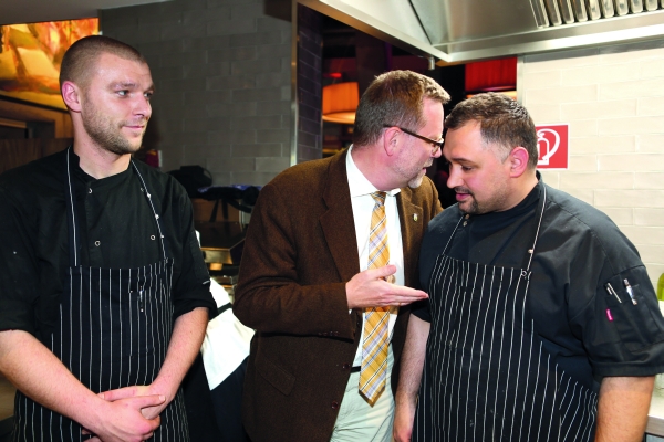 Möglicherweise ist es das, worüber Charlottenburg-Wilmersdorf Bezirksbürgermeister Reinhard Naumann und Küchenchef Ferhat Satikbarlaz während der Eröffnungsparty des Restaurants Wartesaal diskutieren, vielleicht sprechen die beiden Männer aber auch über die neusten Trends am Bürger-Markt. Satikbarlaz, gebürtiger Berliner, Kochlehre in Massimo Mannozzis Bacco und zuletzt Sous Chef im Borchardt, ist die Nummer Eins am Herd dieses neuen metropolen XXL-Restaurants neben dem Theater des Westens.