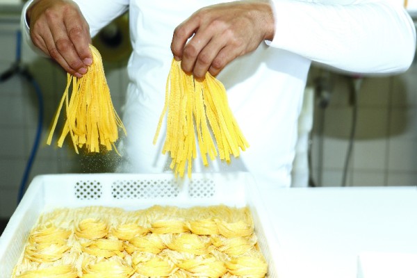 Manchmal erinnert sich Arena an die Anfänge. „Dadurch bleibt man auf dem Boden“, sagt er. 2004 dann er Umzug ins Gewerbegebiet an der Mertensstraße. Inzwichen 20 Mitarbeiter, die im Monat rund 55 Tonnen Pasta produzieren – gefüllte, wie Calzoni, Cappelaci, Caramelle, Fagottini, Ravioloni, Rotondi, Triangoloni, oder Tortellacci und ungefüllte, etwa Finferli, Pappardelle oder Tagliatelle. Dazu Gnocchi, Finferli, klassisch und gefüllt, Manultaschen, insgesamt rund 30 Sorten.
