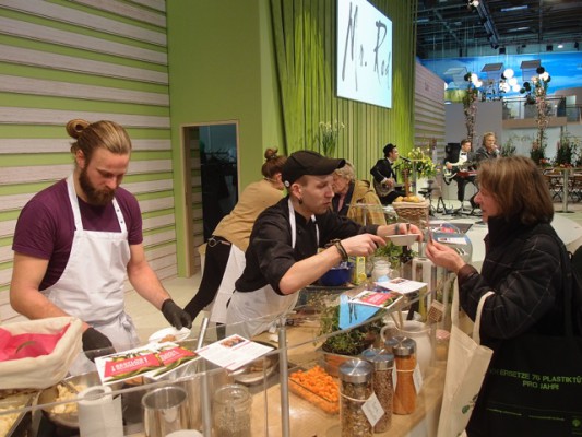 Standmission für einen guten Zweck: Die Köche von Restlos Glücklich aus Berlin bereiteten im Rahmen der bundesweiten Kampagne „Zu gut für die Tonne“ köstliche Snacks aus weggeworfenen Lebensmitteln