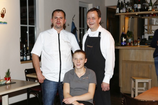 Der erste Blick: Rostrote Holzwände, schwarze Dächer, ein Backofen direkt am Stillen Fließ. Landhaus-Look vom Feinsten, eine Bilderbuch-Anlage ohne die andernorts üblichen Spreewalddekorationen Marke Kahnattrappe mit Trachtenpuppe. Dann die Speisenkammer. Am Anfang war das Ganze nur ein schnörkelloser Frühstücksraum für die Pensionsgäste. Dann keimte die Idee, hier ein Restaurant einzurichten. Marco Giedow erfuhr davon – zurück nach Hause wollte er ohnehin – entschied sich schnell und eröffnete im März 2013 sein kleines kulinarisches Refugium. Auf der Karte stehen Gerichte, die nie vor Kreativität aus der Kurve fliegen, aber immer soliden Gegenwert bieten fürs Geld, aber dazu später mehr.
