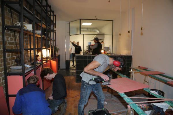 Und Stijn Remi fügt hinzu: „Ende 2014 war dann klar, dass wir es tun, aber nicht in Holland.“ Also kamen die beiden Männer nach Berlin – „Kreuzberg hat uns magisch angezogen“ – suchten einen geeigneten Platz und fanden das Lokal in der Lausitzer Straße. „Ein guter Ort, wenn nicht dieser Sanierungswahnsinn gewesen wäre“, so Lode. „Auf jedem Quadratmeter ein neues Problem“, so Stijn.