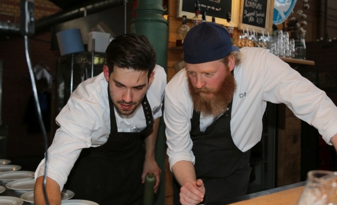 An diesem Sonntagabend wird ein dänisches Drei-Gänge-Menü serviert: Lachs, Erbsen, Sauerampfer und Roggenbrot als Vorspeise; das Hauptgericht heißt Omas Huhn, Gurke, Petersilie, Rhabarber und Kartoffeln mit Speck; das Dessert besteht aus Øllbrød (eine Art Porridge aus Schwarzbrot und Bier), Apfelmus und Sanddornsorbet. Die Anregung dafür kam von Anders Lykke, dem Opernsänger, der nach seiner musikalischen Ausbildung noch ein Ökonomiestudium absolvierte und heute bei einem Berliner Start up arbeitet.