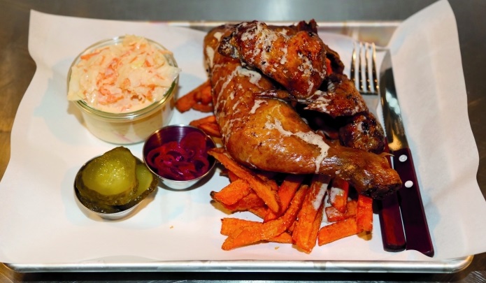 Die Gäste kommen aus Südafrika, an den Nachbartischen sitzen Engländer und Kanadier, am Tresen Schweden. Sie sind allerdings nicht gekommen, um Apfelwein, Bier oder ein Glas Roten zu trinken, sondern um Fleisch zu essen. Fleisch, das nicht im Schnellverfahren gegart, sondern über Stunden gesmokt wurde, heißt geräuchert über amerikanischem Hickory-Holz. Low und slow und eine Klasse für sich. Baby Back Menu, Brisket Menu, Chicken Menu, St. Louis Ribs Menu. „Das Fleisch ist der Held, Hickory die Muse“,sagt Christopher O´Connor.