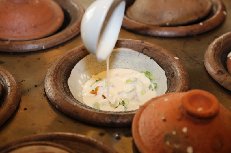 „Wir backen in original Tontöpfen, den Wajans, spezielle Pancakes, die wir mit herzhaften oder süßen Füllungen, Saucen oder Toppings ergänzen“, erklärt Hartwig das Konzept. Basis des Teiges sind Weizen- oder glutenfreies Reismehl sowie Kokosmilch, rund 15 verschiedene Füllungen gibt es – von fleischig bis vegetarisch. „Wem das nicht genügt, der kann sich auch seine eigene Kreation zusammenstellen“, so der Surabi-Meister, schließlich hat in Bandung, der eigentlichen Heimat dieses schnellen Essens auch jede Hausfrau ihre eigenen Rezepte.